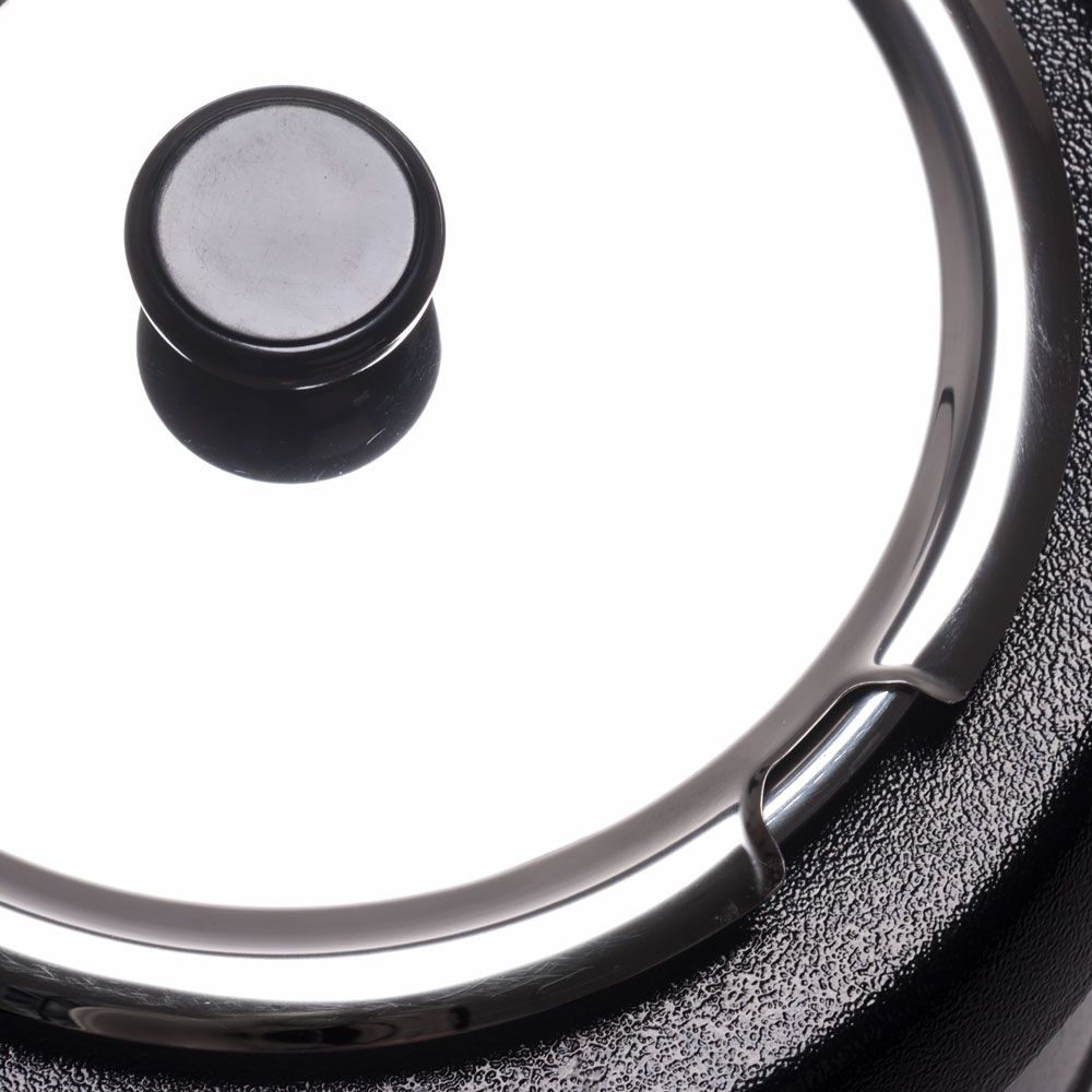 - Schwarzes Gehäuse aus lackiertem Stahl