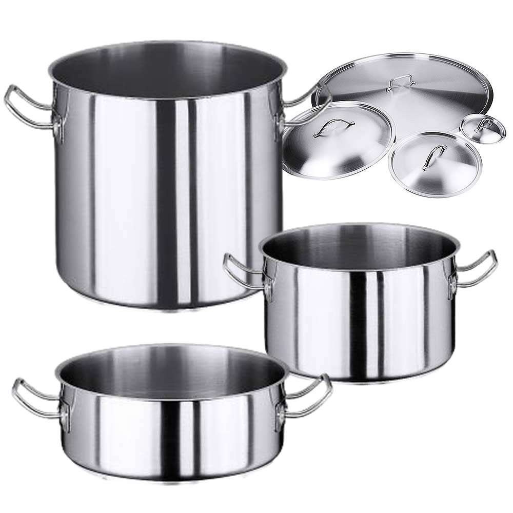 Um eine optimale Wärmeübertragung zu gewährleisten, sind die Edelstahl-Kochtöpfe mit Aluminium-Kompensböden ausgestattet (Sandwich-Boden: Edelstahl-Aluminium-Edelstahl). Dadurch wird ein energiesparendes Kochen ermöglicht.