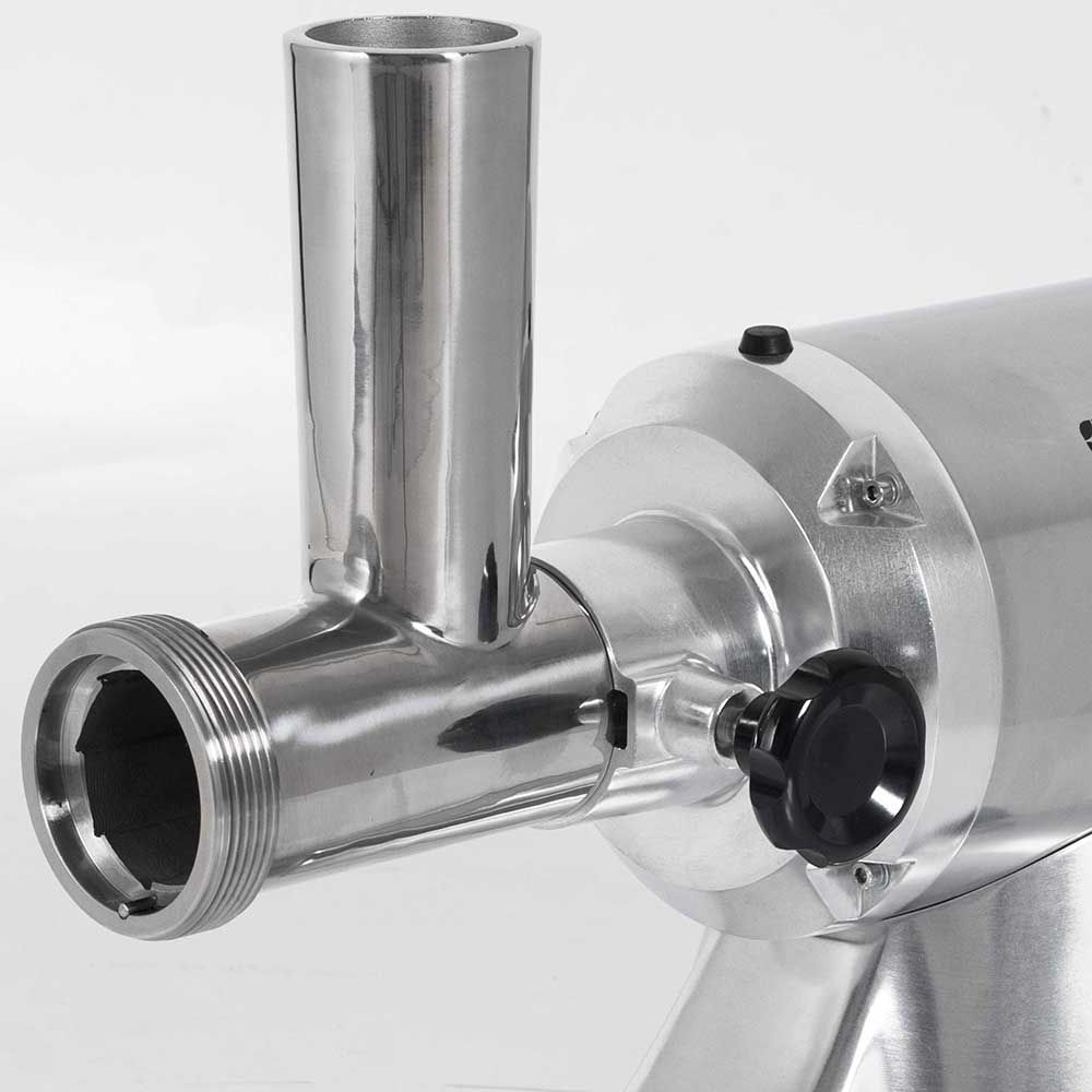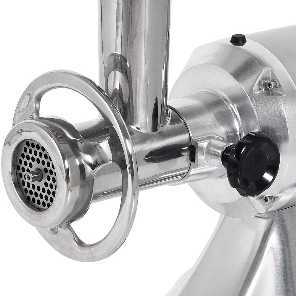 Dieser Fleischwolf ist ein Kraftpaket und für die Herstellung von Hackfleisch oder sogar die Verarbeitung von Fisch besonders geeignet. Das kompakte, robuste Gehäuse wurde aus langlebigem Edelstahl und Aluminium gefertigt.