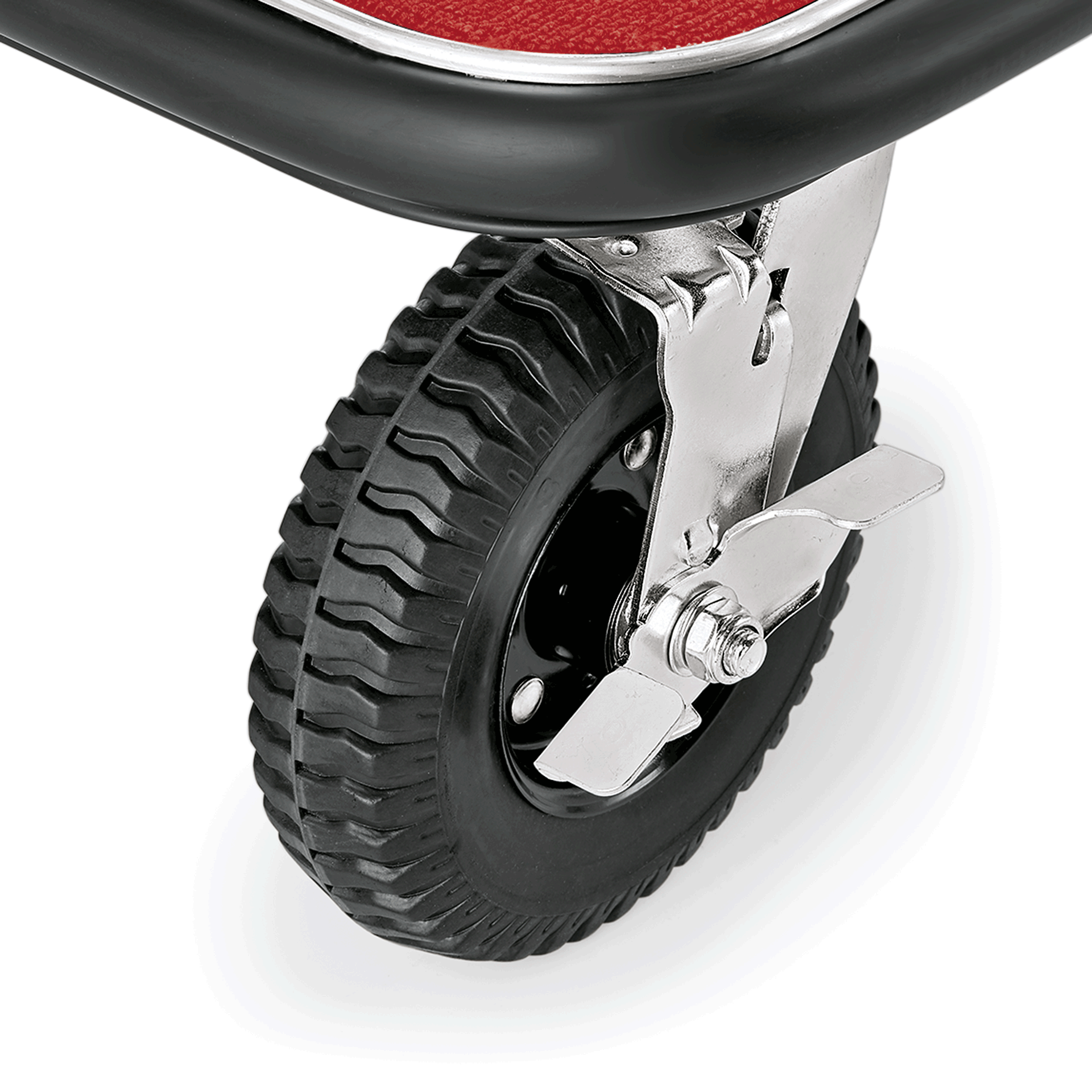 - 2 schwenkbare Rollen Ø 20 cm mit Feststeller und 2 Bockrollen