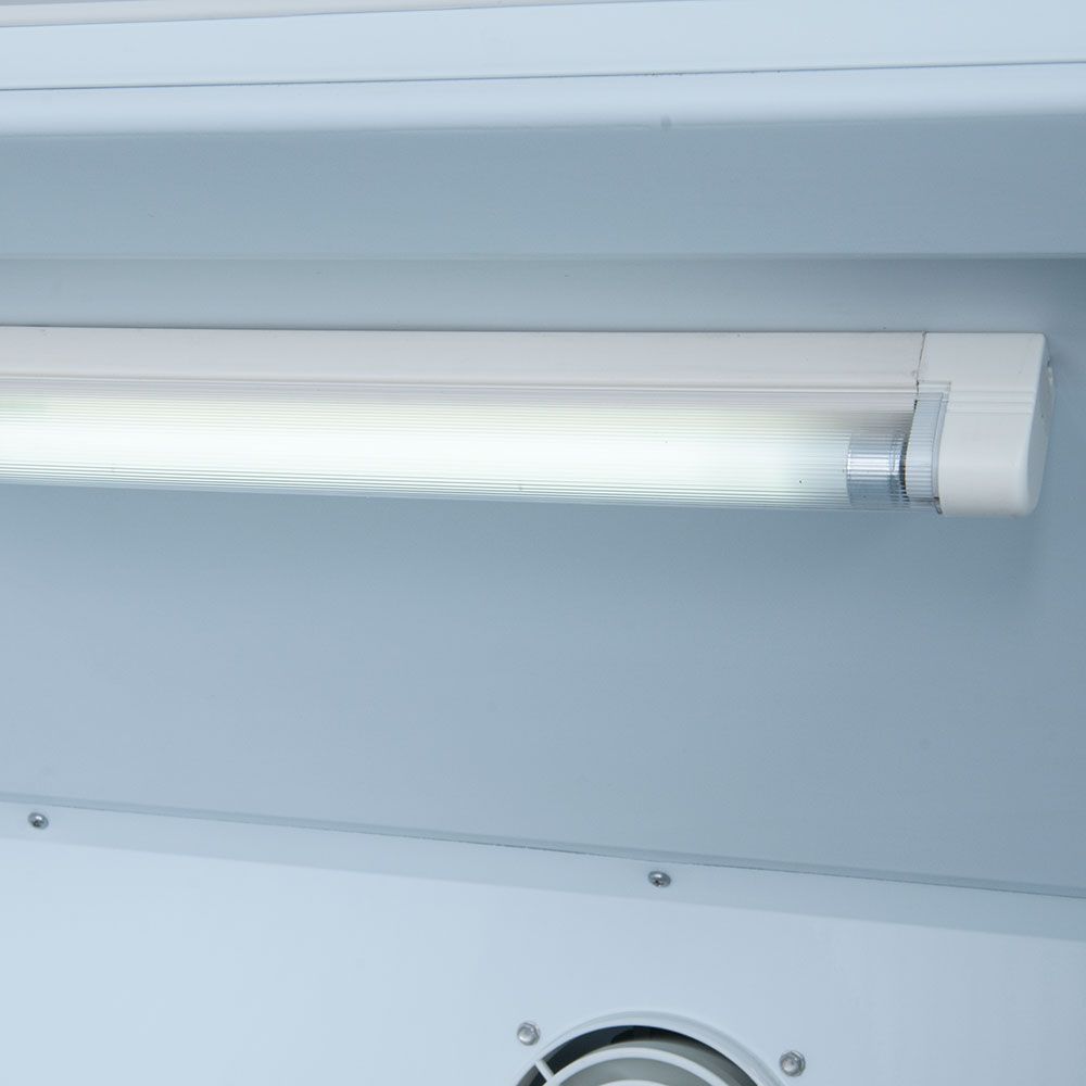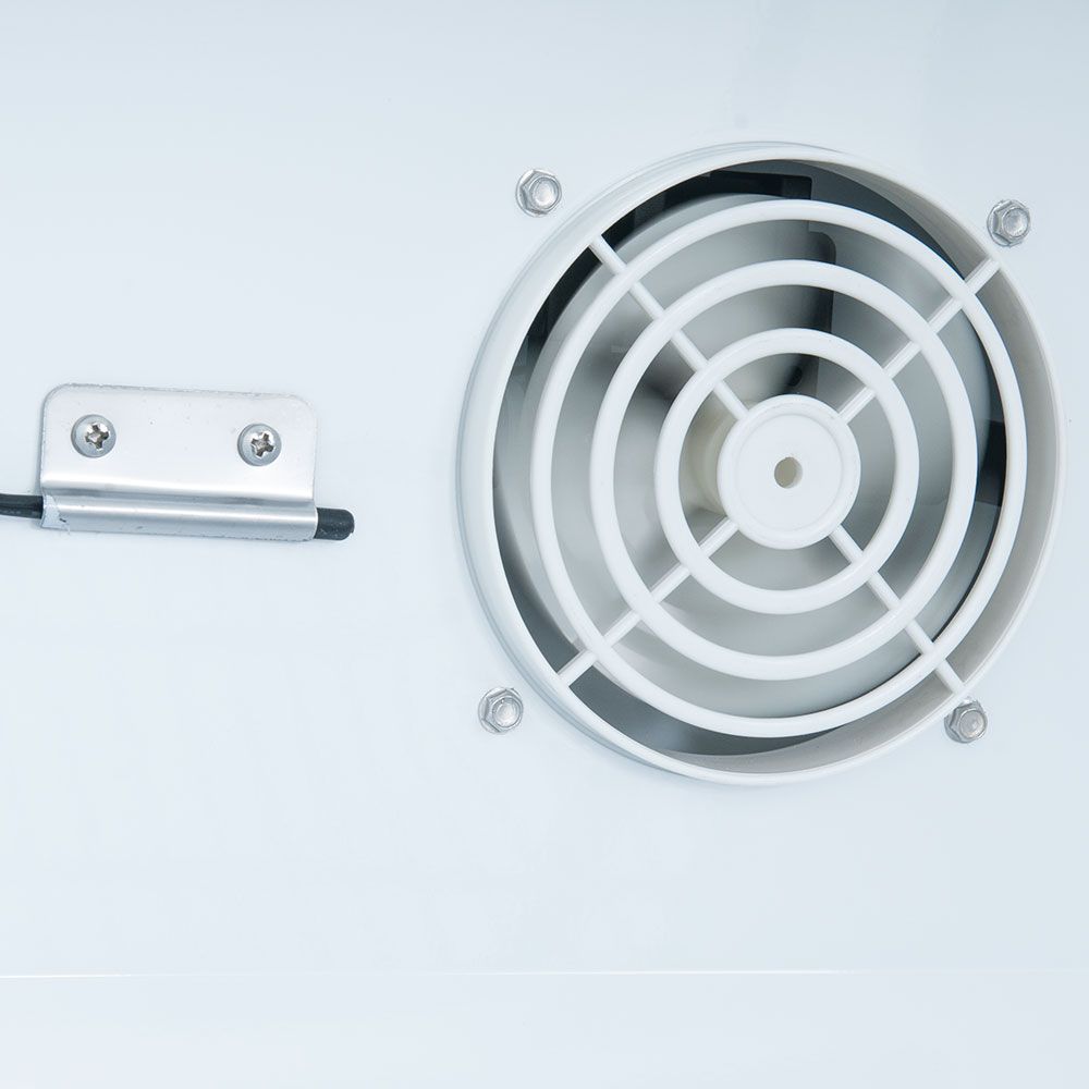- weißes Gehäuse aus pulverbeschichtetem Stahl