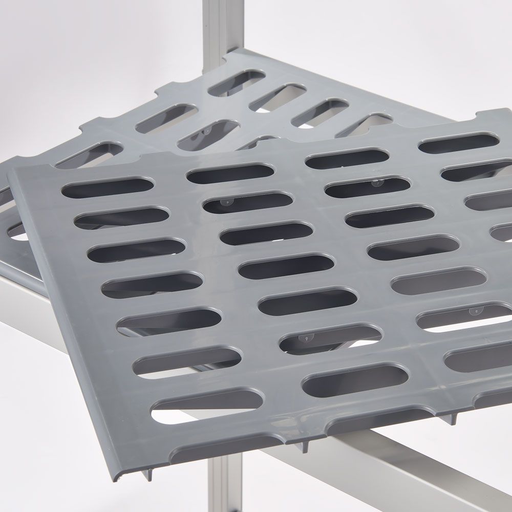 - Zweiteilige, perforierte Regalböden aus ABS-Kunststoff