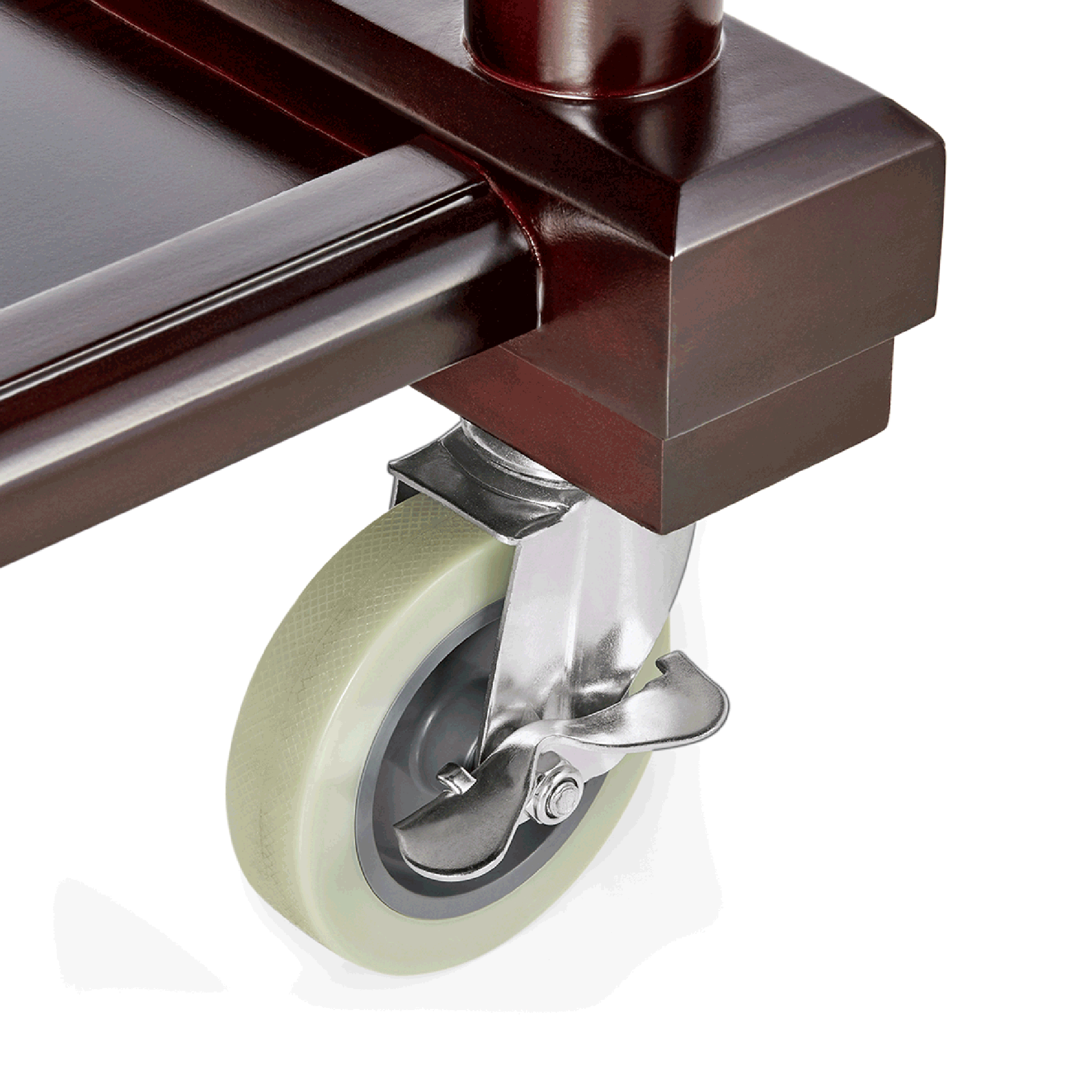 - 4 schwenkbare Rollen Ø 10 cm, davon 2 mit Feststeller