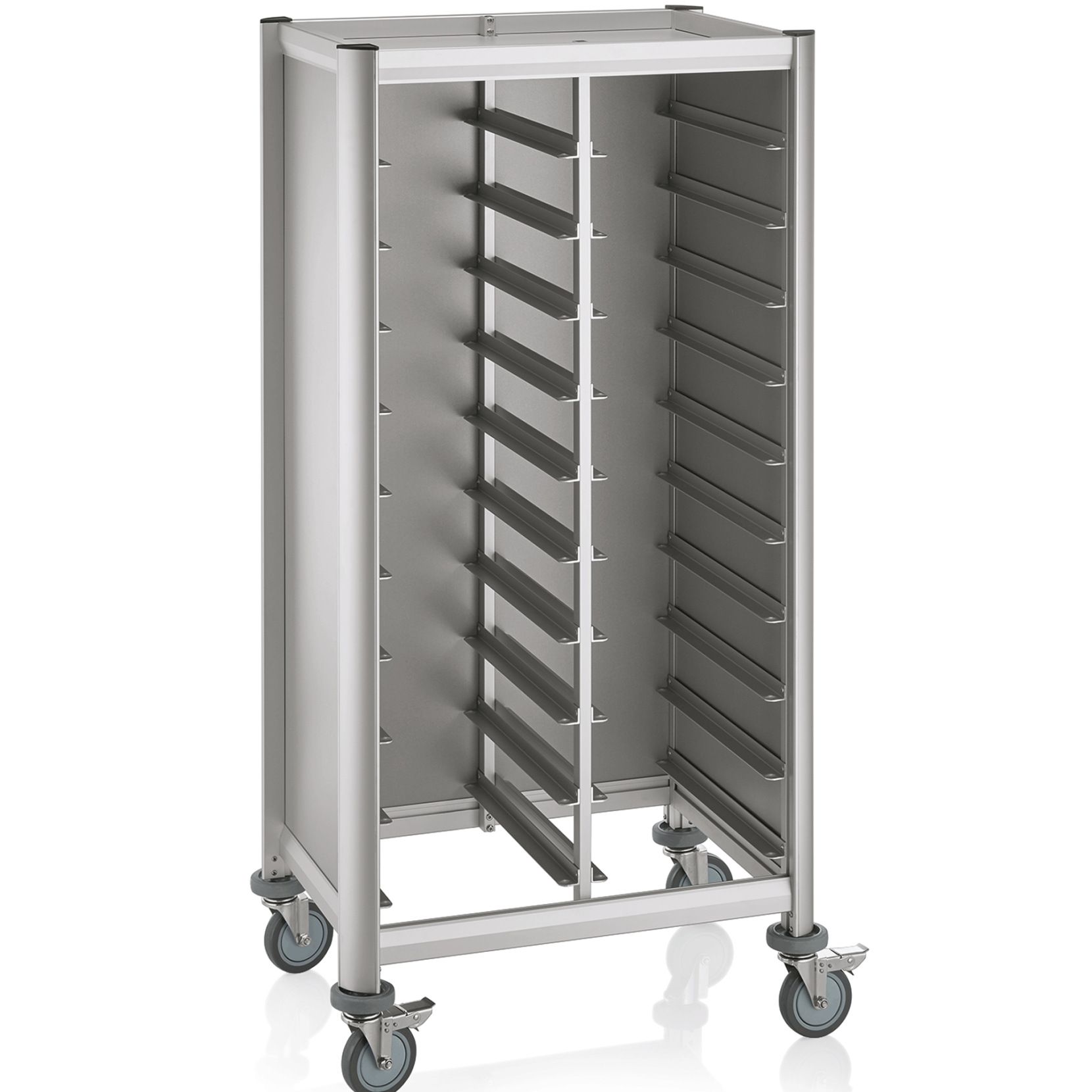 Produktinformationen "Tablettwagen für 2 x 10 Tabletts GN 1/1, silberfarben, Alu-Profile/MDF"