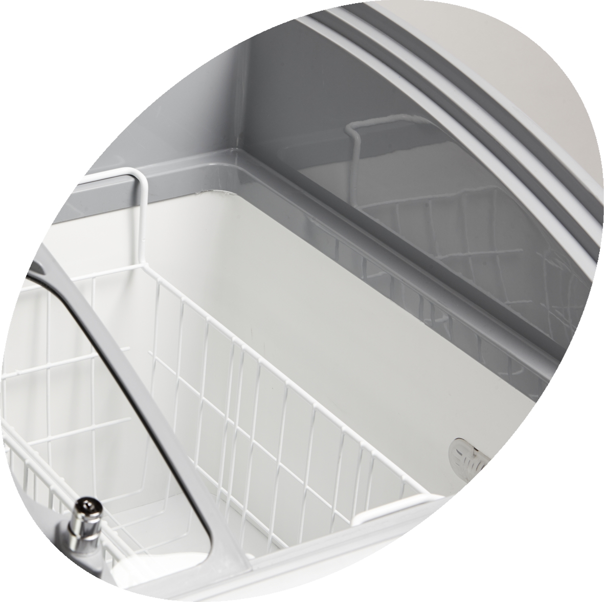Tiefkltruhen mit schren, gewbten Glasdeckeln