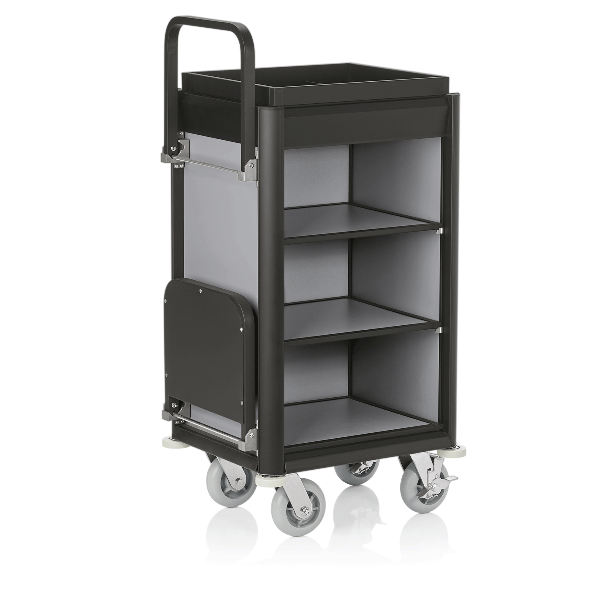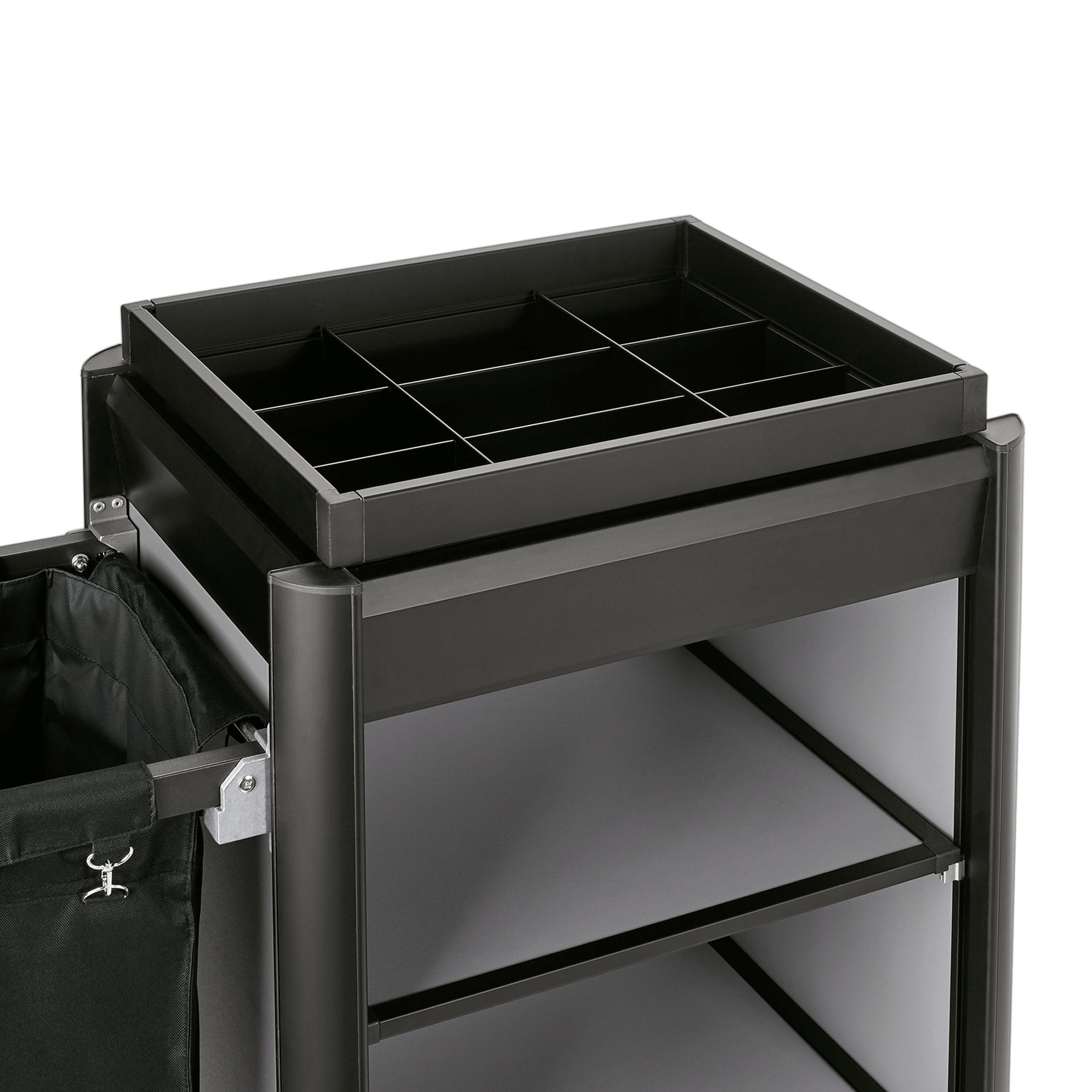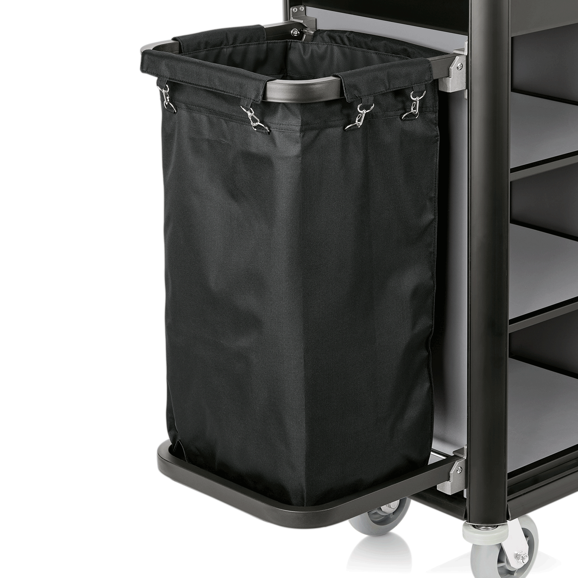Produktinformationen "Zimmerservicewagen Isabella, 1 Wäschesack, Aluoptik, schwarze Kantenprofile"