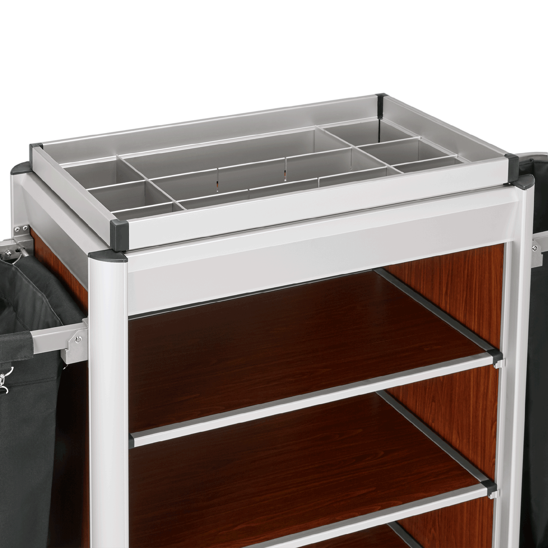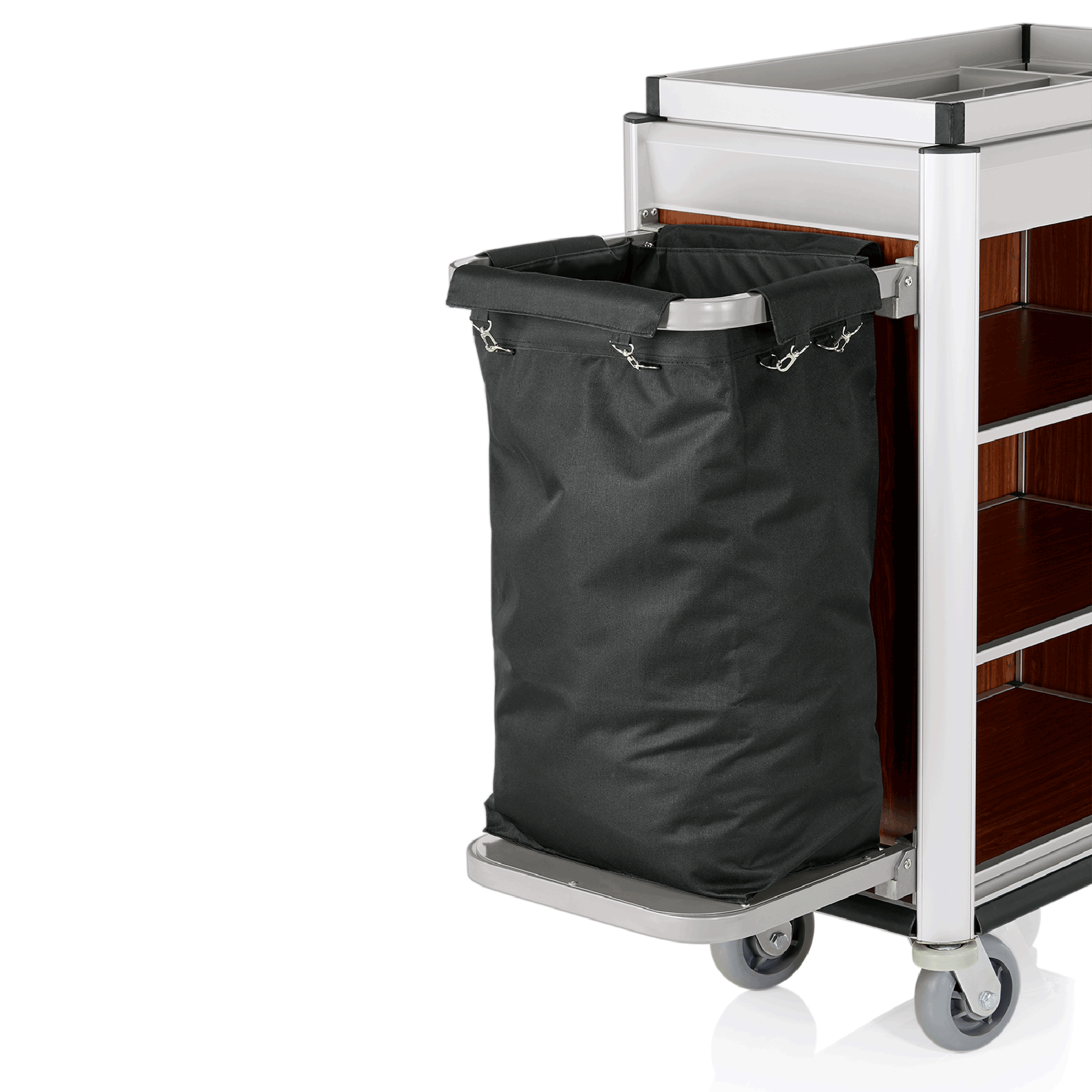 Produktinformationen "Zimmerservicewagen Isabella, 2 Wäschesäcke, dunkle Holzoptik, helle Profile"