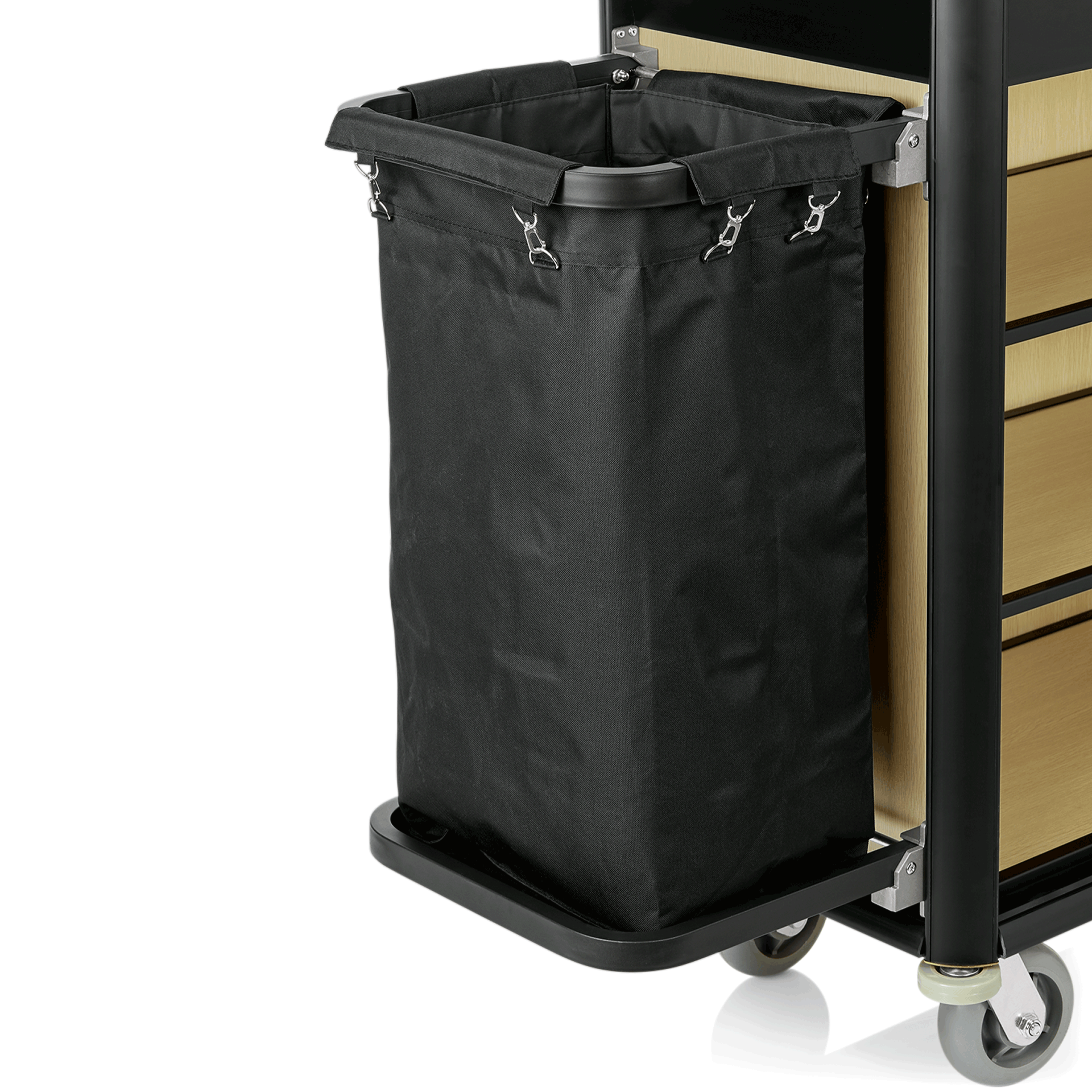 Produktinformationen "Zimmerservicewagen Isabella, 2 Wäschesäcke, helle Holzoptik, schwarze Profile"